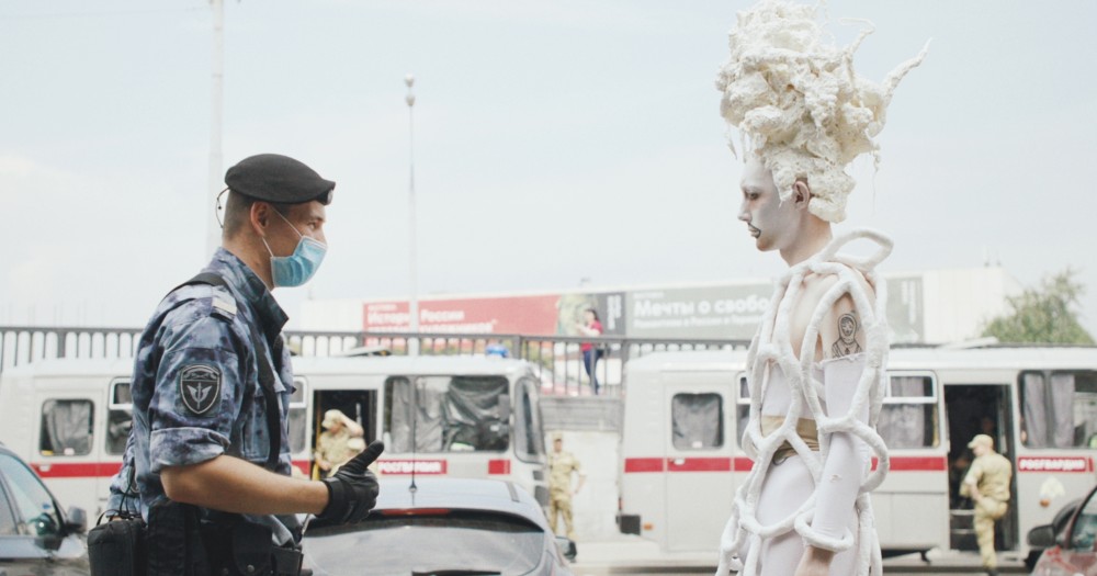 白く塗り上げた顔に奇抜なメーキャップ。過激で芸術的なコスチューム。同性愛宣伝禁止法や性別変更禁止法など、LGBTQ+の活動を禁止する法律の制定が進んでいくロシアにおいて、そのような姿で街を闊歩する行為は、挑発の表現だと理解されてしまう。